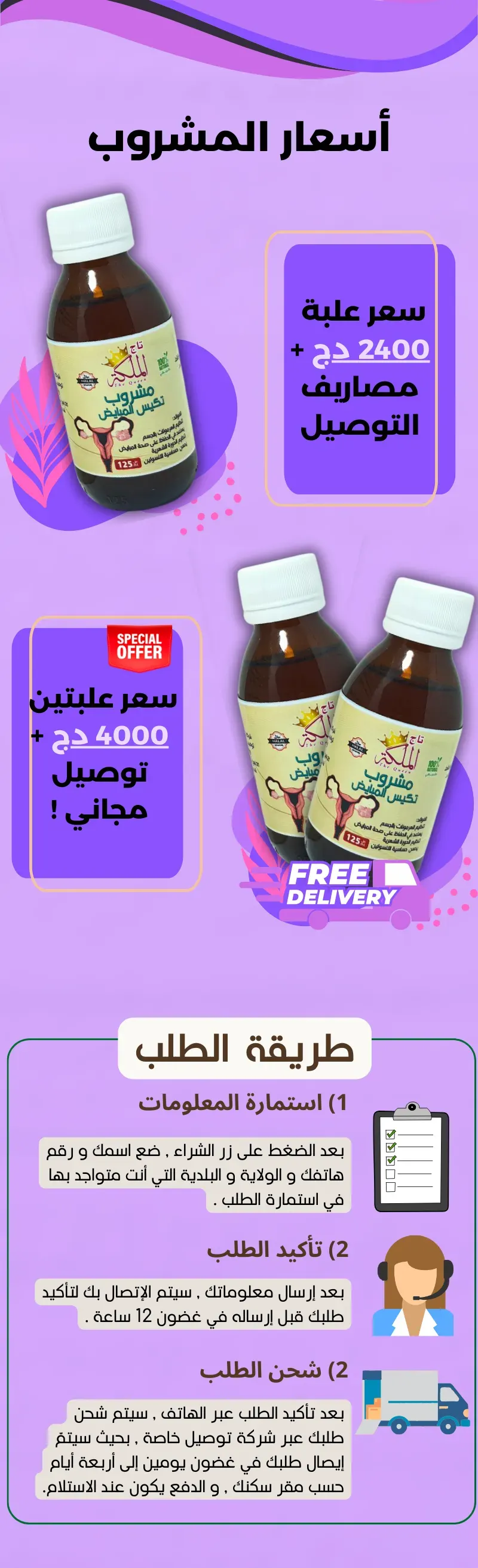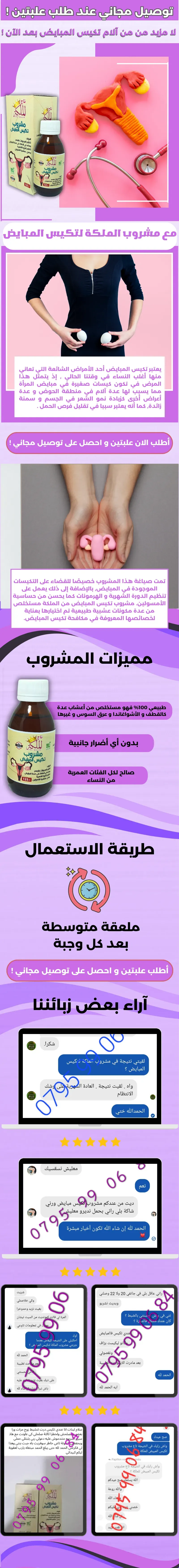 هل تعانين من تأخر الدورة الشهرية، زيادة الوزن، أو نمو الشعر الزائد؟ 🌸 اكتشفي الحل الطبيعي لتكيس المبايض! 🌿 مشروب تكيس المبايض من تاج الملكة، مستخلص من أعشاب طبيعية 100%، يعمل على: 🌺 تنظيم الدورة الشهرية 🌸 تحسين صحة المبايض 🌿 تنظيم هرمونات الجسم 🍃 تحسين حساسية الأنسولين مجرب وفعال بدون أي أضرار جانبية. ✅
